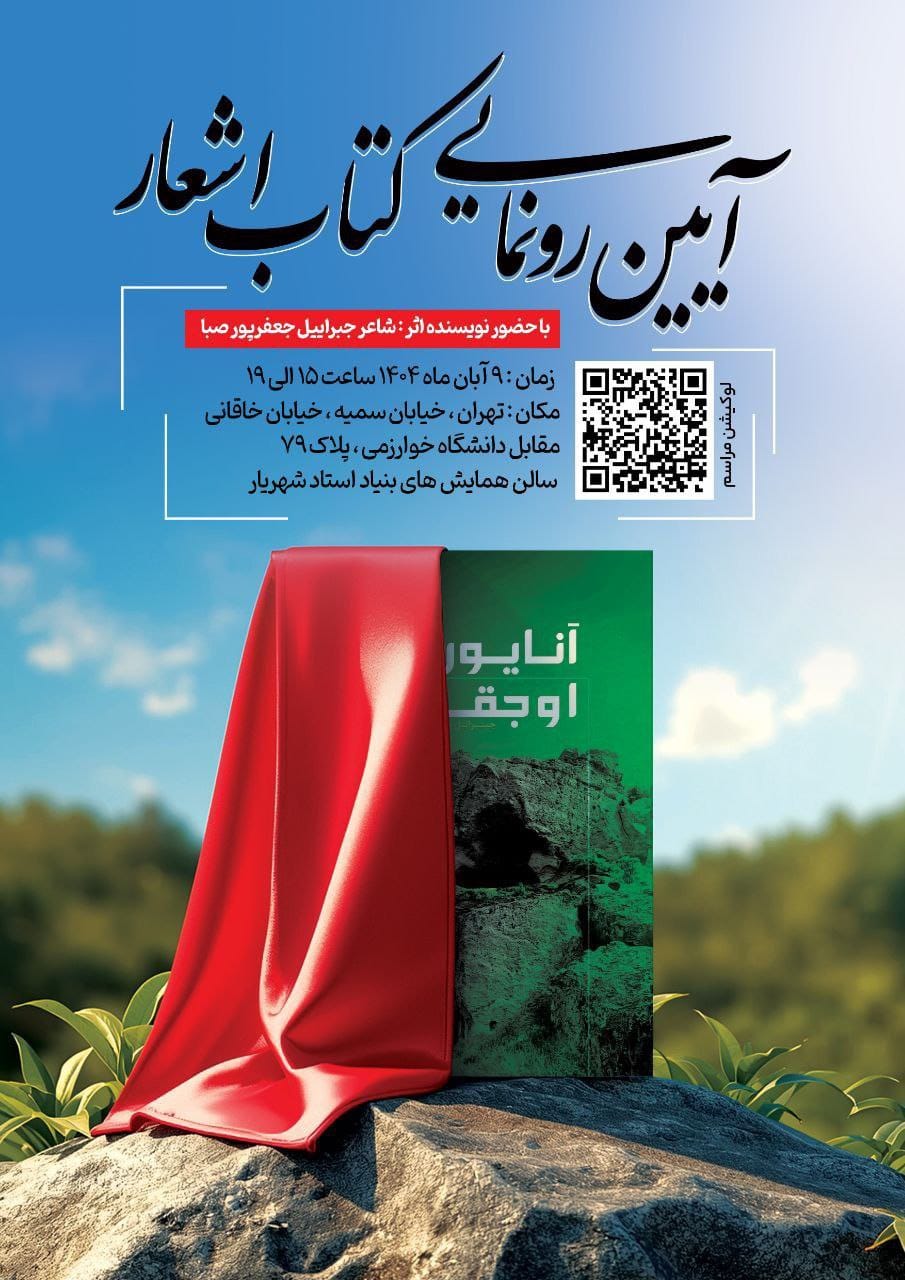 آیین رونمایی کتاب اشعار جبراییل جعفرپور صبا، از سوی بنیاد فرهنگی استاد شهریار برگزار میشود.