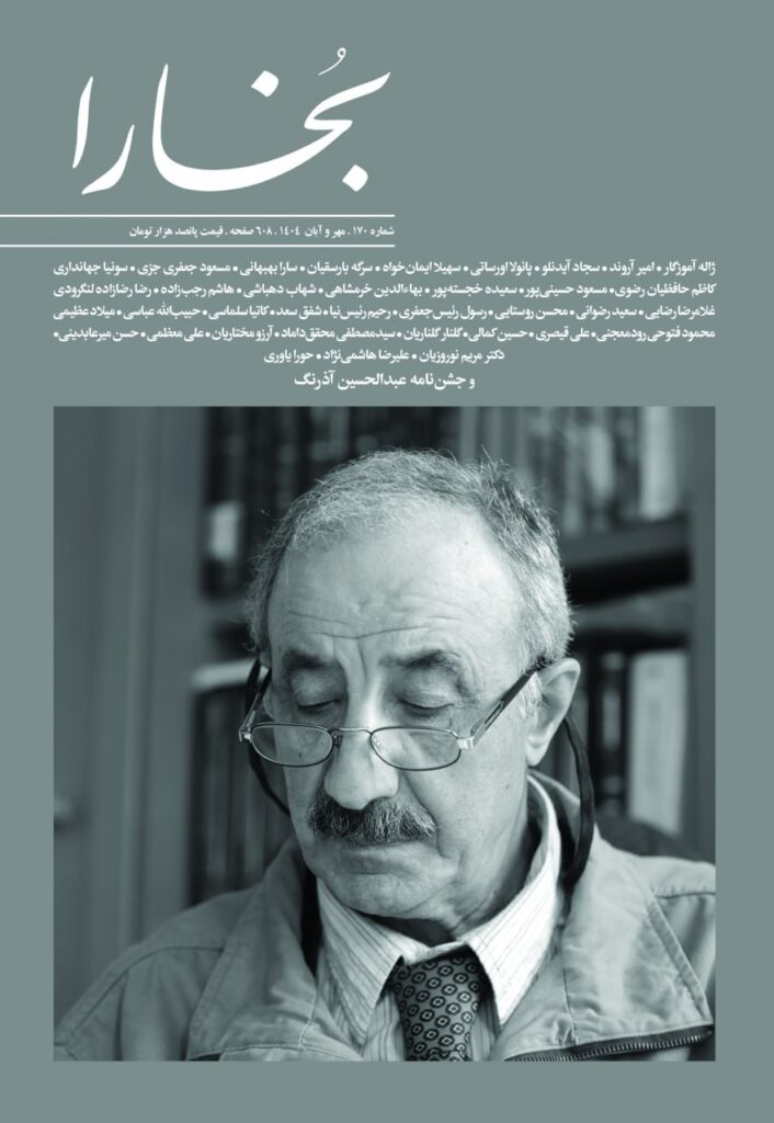 یکصد و هفتادمین شمارۀ بخارا با تصویری از استاد عبدالحسین آذرنگ بر روی جلد در ۶۰۸ صفحه منتشر شد و از صبح سهشنبه هشتم مهرماه ۱۴۰۴ در کتابفروشیها و دکههای روزنامهفروشی در دسترس است.