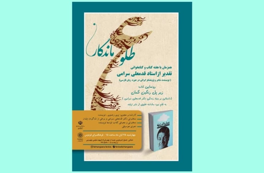 آیین تقدیر از قدمعلی سرامی، نویسنده، شاعر و پژوهشگر حوزه زبان فارسی با عنوان «طلوع ماندگار» در پنجمین روز از سیوسومین دوره هفته کتاب جمهوری اسلامی ایران برگزار میشود. در این آیین از کتاب «زیر پل رنگینکمان» (داستانی بر بنیاد زندگی دکتر قدمعلی سرامی) به قلم نیره سادات علوی نیز رونمایی میشود.