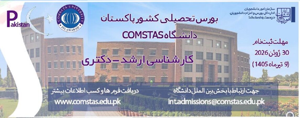 تهران- ایرنا- طبق اعلام اداره کل بورس و اعزام دانشجویان سازمان امور دانشجویان وزارت علوم، دانشگاه کامستس COMSTAS اسلام‌آباد پاکستان برای ترم‌های بهار و پاییز۲۰۲۶ در دوره‌های تحصیلات تکمیلی بورسیه می‌پذیرد.