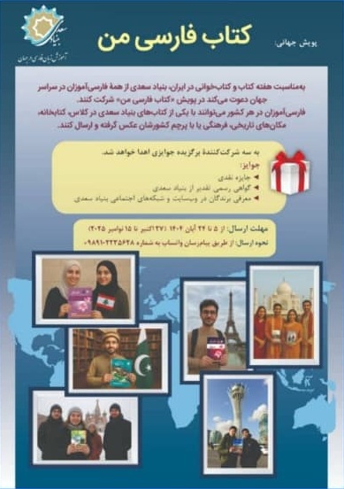 به مناسبت هفته کتاب و کتابخوانی در ایران، بنیاد سعدی پویش جهانی «کتاب فارسی من» را با هدف ترویج کتابخوانی و تقویت پیوند فارسیآموزان سراسر جهان با زبان و فرهنگ ایرانی برگزار میکند.