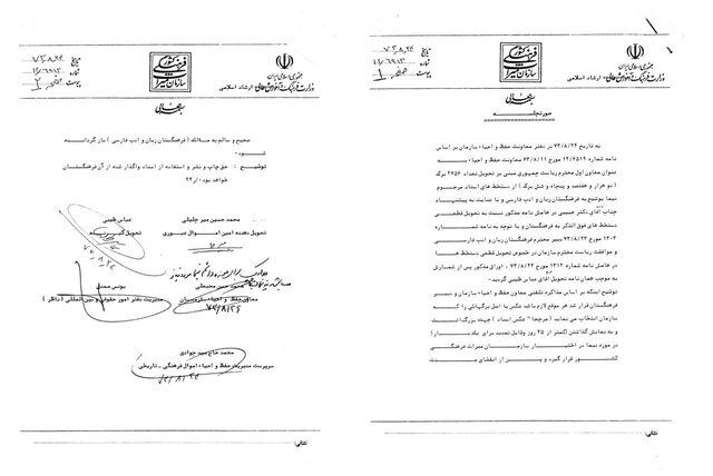 به خاطرهی رفیعِ نیمای بزرگ سوگند میخورم که بخش اعظمی از دستنوشتههای نیما که امروز نزد فرهنگستان زبان است، توسط من به آنان سپرده نشده است. من بر این باورم که در غیاب من و با همکاری برخی مدیران فرهنگستان مثل آقای نصیری که دوستی نزدیکی با طاهباز داشت، این اتفاق روی داده است. درواقع طاهباز از غیاب من استفاده کرد و در همان دوره، باقی دستنوشتههایی را که پیش خود داشت، به فرهنگستان داد. میخواهم به چند سند اشاره کنم که متوجه شوید چه وضعیت اسفباری برای من ایجاد کردند. در یکی از سندها آثاری که من تحویل میراث دادهام بیش از ۲۰۰۰ برگ عنوان شده، اما در سندی دیگر در فرهنگستان بیش از ۴۰۰۰ برگ. مسئلهی شُبههبرانگیزی که من در آن روزها به آن دقت نکردم و سالها بعد متوجه آن شدم.